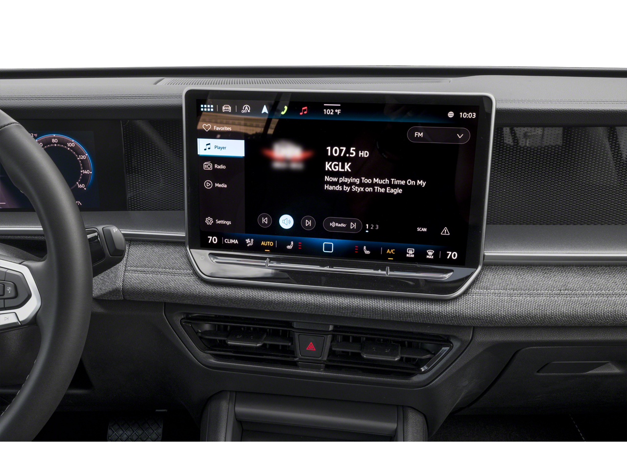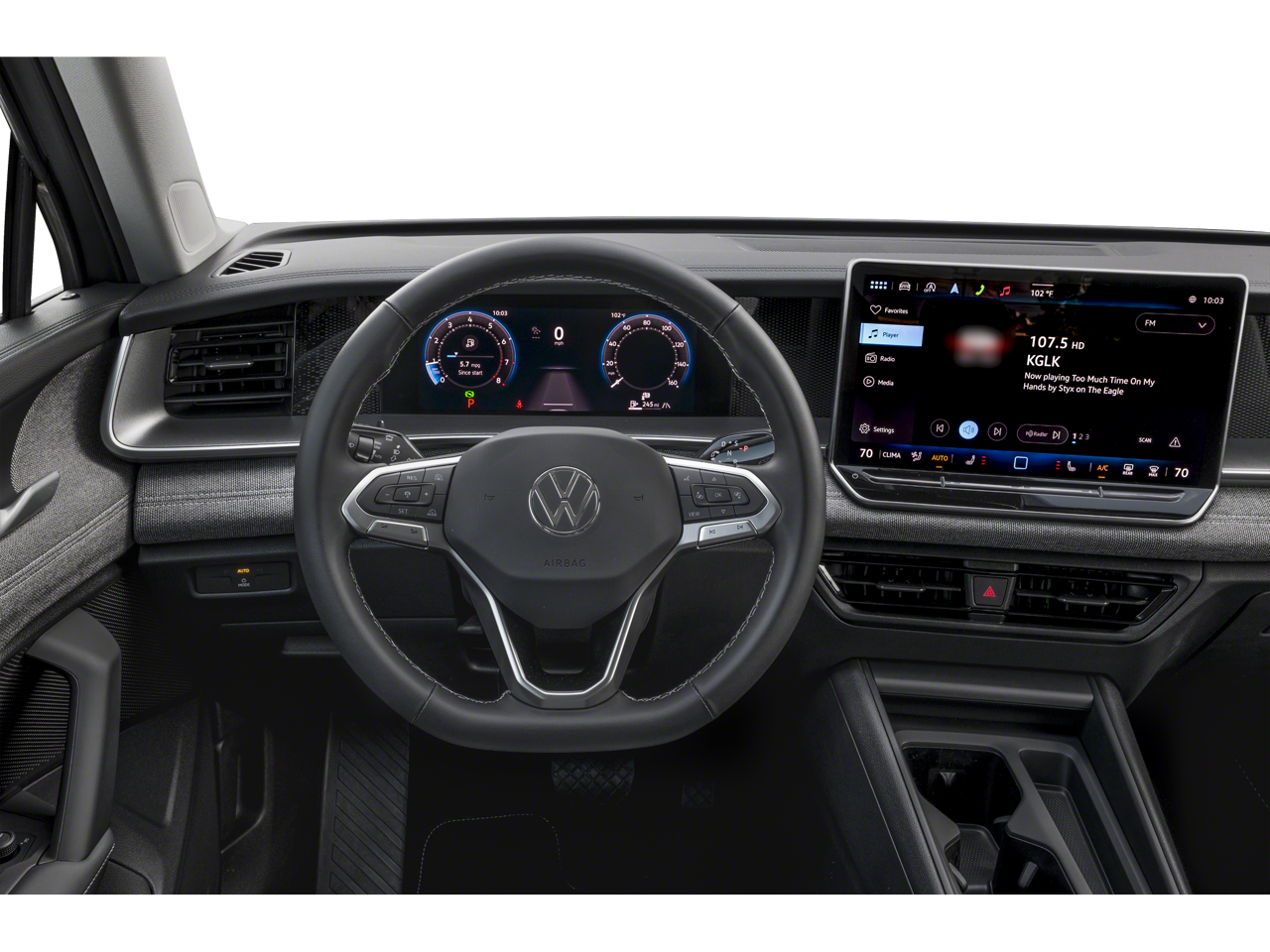 - Radio: MIB4 Composition Media Touchscreen AM/FM -inc: WMA/MP3/FLAC player w/USB, 12.9" touchscreen multi-function center display w/backlit sliders, 6 speakers + center speaker (7 speakers total) sound system, capability for in-vehicle 4G LTE enabled Wi-Fi (cellular data plan required; includes limited trial), capability for VW Car-Net services (capabilities for services vary; requires enrollment or subscription), Bluetooth® connectivity (for compatible devices), SiriusXM w/360L (w/3-month free trial subscription; 360L services require acceptance of Car-Net terms), App-Connect smartphone integration (w/Apple CarPlay, Android Auto and MirrorLink) via USB, wireless App-Connect smartphone integration (for compatible devices) w/multi-phone pairing capability, 45W fast charging (for compatible mobile phones and accessories) via USB in both rows and Qi wireless inductive charger, cooled, up to 15W (for compatible mobile phones and accessories)