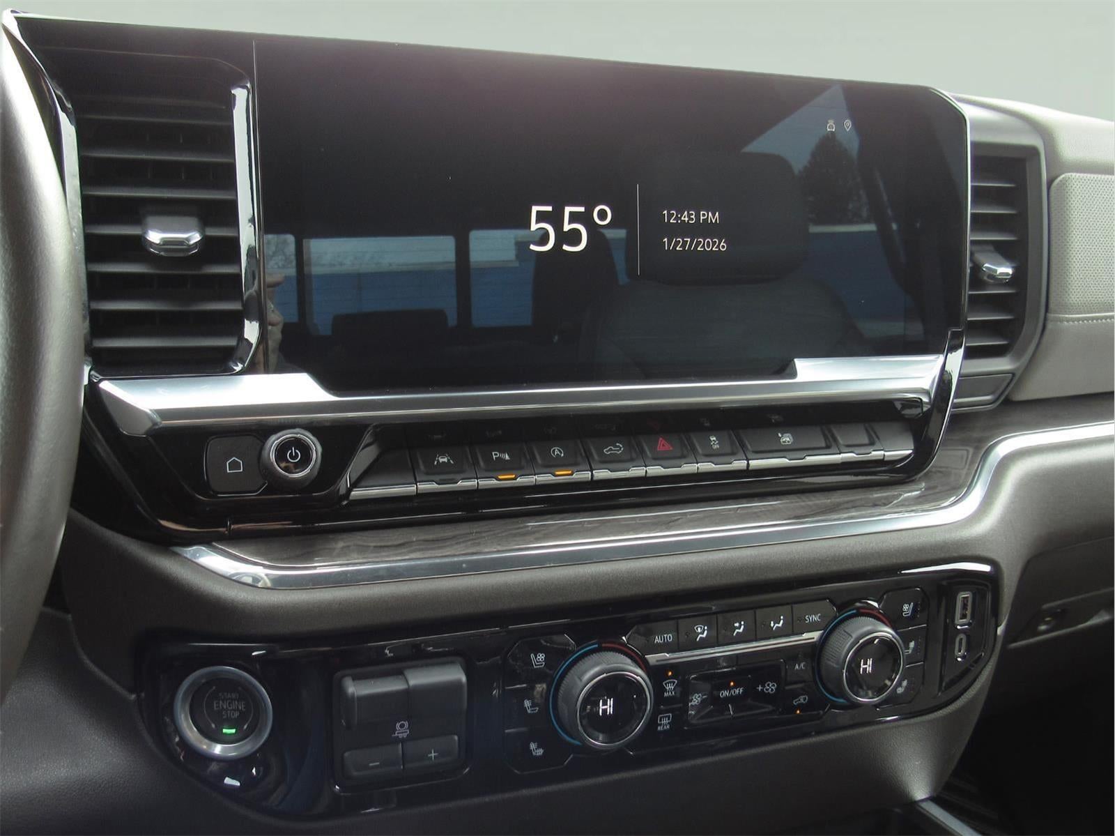 This 2023 Chevrolet Silverado 1500 LTZ, has a Glacier Blue Metallic exterior and an Gideon/Very Dark Atmosphere interior color. 23,011 miles. Stock Number T269527L. You can connect with us by calling (585) 663-4040. LTZ Convenience Package II ($1,125 value)Power Sliding Rear Window with Rear Defogger2nd Row Heated Outboard SeatsAdaptive Cruise ControlUniversal Home RemoteMax Trailering Package ($850 value)7,300 lbs (3,311 Kg) GVWR3.42 Rear Axle Ratio220 Amp AlternatorEnhanced Cooling RadiatorIncreased RGAWRHeavier Duty Rear SpringsPreferred Equipment Group 1LZSiriusXM with 360L10-Way Power Driver Seat with LumbarDriver Memory10-Way Power Passenger Seat Adjuster with LumbarPower Front Passenger Windows with Express Up/downPower Rear Windows with Express DownDeep-Tinted GlassKeyless Open and StartPower Front Windows with Driver Express Up/downRear Wheelhouse LinersColor-Keyed Carpeting Floor CoveringFront Rubberized Vinyl Floor MatsRear Rubberized-Vinyl Floor MatsBluetooth® For PhoneRemote Vehicle Starter SystemElectric Rear-Window DefoggerFront Rainsensing WipersCompassAuto-Dimming Inside Rearview MirrorOutside Heated Power-Adjustable MirrorsChrome Mirror CapsAuto-Locking Rear DifferentialIntegrated Trailer Brake ControllerElectronic Cruise ControlHeated Driver and Front Outboard Passenger SeatsHeated Steering Wheel120-Volt Instrument Panel Power OutletElectrical Steering Column LockWrapped Steering WheelSingle-Speed Transfer CaseLTZ Plus PackageChevy Safety AssistWireless Phone ProjectionHitch Guidance with Hitch View275/60R20 AS BW TiresStandard TailgatePower TailgateUp-Level Rear Seat with Storage PackageFront LED Fog LampsDual Rear USB Ports (charge Only)12.3" Multicolor Reconfigurable Digital DisplayOnStar and Chevrolet Connected Services CapableTrailering AppLED Cargo Area LightingSteering Wheel Audio ControlsTheft Deterrent System (unauthorized Entry)Front Frame-Mounted Black Recovery HooksTrailering Package Safety and Security Forward collision mitigation - Forward thinking. You look away for just a second and suddenly the vehicle in front of you has stopped. That's when the forward collision mitigation system comes to life. When it senses an impending impact, it will activate a combination of features to help prevent or reduce the severity of an accident. Forward collision mitigation is always looking ahead. Pedestrian impact prevention - An extra step toward safety. Pedestrians don't always stop, look, and listen, but with Pedestrian Impact Prevention, your vehicle is equipped to better see them and avoid them. This system constantly monitors the road ahead to identify and track pedestrians. It projects that image to an interior display screen, AND should an impact become likely, Pedestrian impact prevention takes steps to avoid a collision. Pedestrian impact prevention - An extra step toward safety. Pedestrians don't always stop, look, and listen, but with Pedestrian Impact Prevention, your vehicle is equipped to better see them and avoid them. This system constantly monitors the road ahead to identify and track pedestrians. It projects that image to an interior display screen, AND should an impact become likely, Pedestrian impact prevention takes steps to avoid a collision.Technology and Telematics Apple CarPlay/Android Auto smart device wireless mirroring Mobile hotspot - WiFi on the fly. Connect your devices to the Internet through your vehicles private mobile hotspot and take the internet wherever your journey takes you, without eating up your data allowance. Find the hotspot with mobile hotspot. EMISSIONS, CONNECTICUT, DELAWARE, MAINE, MARYLAND, MASSACHUSETTS, NEW JERSEY, NEW YORK, OREGON, PENNSYLVANIA, RHODE ISLAND, VERMONT AND WASHINGTON STATE REQUIREMENTS, ENGINE, 6.2L ECOTEC3 V8, TRANSMISSION, 10-SPEED AUTOMATIC, GVWR, 7300 LBS. (3311 KG), REAR AXLE, 3.42 RATIO, WHEELS, 20" X 9" (50.8 CM X 22.9 CM) STERLING SILVER PAINTED ALUMINUM, TIRES, 275/60R20 ALL-SEASON, BLACKWALL, TIRE, SPARE 255/80R17SL ALL-SEASON, BL