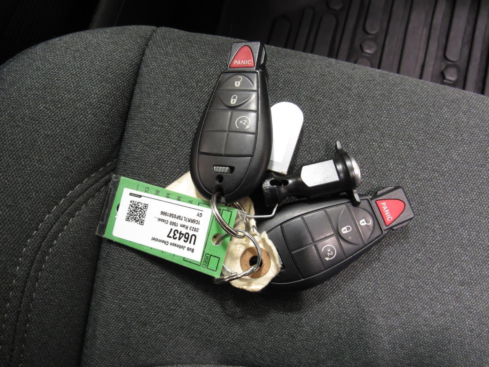 This 2023 Ram 1500 Classic Warlock is available exclusively at the The Bob Johnson Pre-Owned Certified Collection 4552 W Ridge, Rochester, NY 14626. You can connect with us by calling (585) 339-2731. 2023 Ram 1500 Classic Warlock Stock Number: U6437 Driven 22,946 Miles In a Granite Crystal Metallic Exterior complimented by a Black Interior. Vin Number: 1C6RR7LT5PS581996 Electronics Convenience GroupLuxury GroupOverhead Console/garage Door OpenerSun Visors with Illuminated Vanity MirrorsAuto-Dimming Rearview MirrorAuto-Dimming Exterior Driver MirrorBlack Power Fold Heated Mirrors with Signals7" Customizable In-Cluster DisplayExterior Mirrors with Turn SignalsExterior Mirrors with Courtesy LampsPower Folding Exterior MirrorsRear Dome Lamp with On/off SwitchLED Bed LightingSteering Wheel-Mounted Audio ControlsLeather-Wrapped Steering WheelUniversal Garage Door OpenerUtility GroupProtection Group ($250 value)Full-Size Spare TireTow HooksTransfer Case Skid Plate ShieldFront Suspension Skid PlateWarlock Decor Package ($395 value)Warlock DecalSport Performance Hood DecalHeated Seats and Wheel GroupTrailer Tow Mirrors and Brake Group ($530 value)Black Power Trailer Tow MirrorsClass IV Hitch ReceiverTrailer Brake ControlQuick Order Package 26F Warlock ($2,995 value)Warlock PackageSport Tail LampsDedicated Daytime Running LightsBi-Function Halogen Projector HeadlampsBlack Exterior BadgingBlack RAM's Head Tailgate BadgeBlack Powder-Coated Rear BumperBlack Powder-Coated Front BumperBlack Headlamp Filler PanelBlack Grille with RAM LetteringFront Wheel Well LinersBlack Wheel FlaresB-Pillar Black-OutBlack 5.7L Hemi BadgeBlack 4x4 BadgeRear Heavy-Duty Shock AbsorbersP275/60R20 BSW All-Season TiresSemi-Gloss Black Wheel Centre Hub20" X 9" High-Gloss Black Aluminum WheelsPark-Sense Rear Park Assist SystemWarlock Interior AccentsRaised Ride HeightQuick Order Package 29F Warlock ($2,995 value)Warlock PackageSport Tail LampsDedicated Daytime Running LightsBi-Function Halogen Projector HeadlampsBlack Exterior BadgingBlack RAM's Head Tailgate BadgeBlack Powder-Coated Rear BumperBlack Powder-Coated Front BumperBlack Headlamp Filler PanelBlack Grille with RAM LetteringFront Wheel Well LinersBlack Wheel FlaresB-Pillar Black-OutBlack 4x4 BadgeRear Heavy-Duty Shock AbsorbersP275/60R20 BSW All-Season TiresSemi-Gloss Black Wheel Centre Hub20" X 9" High-Gloss Black Aluminum WheelsPark-Sense Rear Park Assist SystemWarlock Interior AccentsRaised Ride Height Comfort The steering wheel rim is heated. Heated seats offer cool weather comfort by warming the seat quickly, before the air in the passenger compartment is fully warmed by the heater. The seating surfaces are covered in cloth.Technology and Telematics Without the need for a manufacturer specific app to be installed on the smart device, the vehicle infotainment system can access and control functions of a smart device physically plugged-into the vehicle. Otherwise known as Bluetooth®, this technology allows electronic devices to integrate with the vehicle systems without the need for a physical connection between them. Bob Johnson Certified Collection is a stand-alone, pre-owned facility that rivals many franchise dealers' facilities. The selection and reconditioning process is unmatched and has set a new standard for pre-owned dealers entirely. Only the best-of-the-best qualify for our retail lot. While we see dozens of vehicles each day, only a few "make the team". This pre-owned 2023 Ram 1500 Classic Warlock is one of those few. Please verify the accuracy of information in regards to the actual vehicle equipment, miles, vehicle specifications, location, and vehicle price with dealer. Bob Johnson Pre-Owned Certified Collection. 4552 W. Ridge Road , Rochester, NY 14626. We are located near the intersection of Manitou Road & W. Ridge Road. call 585.339.2731 to schedule a test drive!