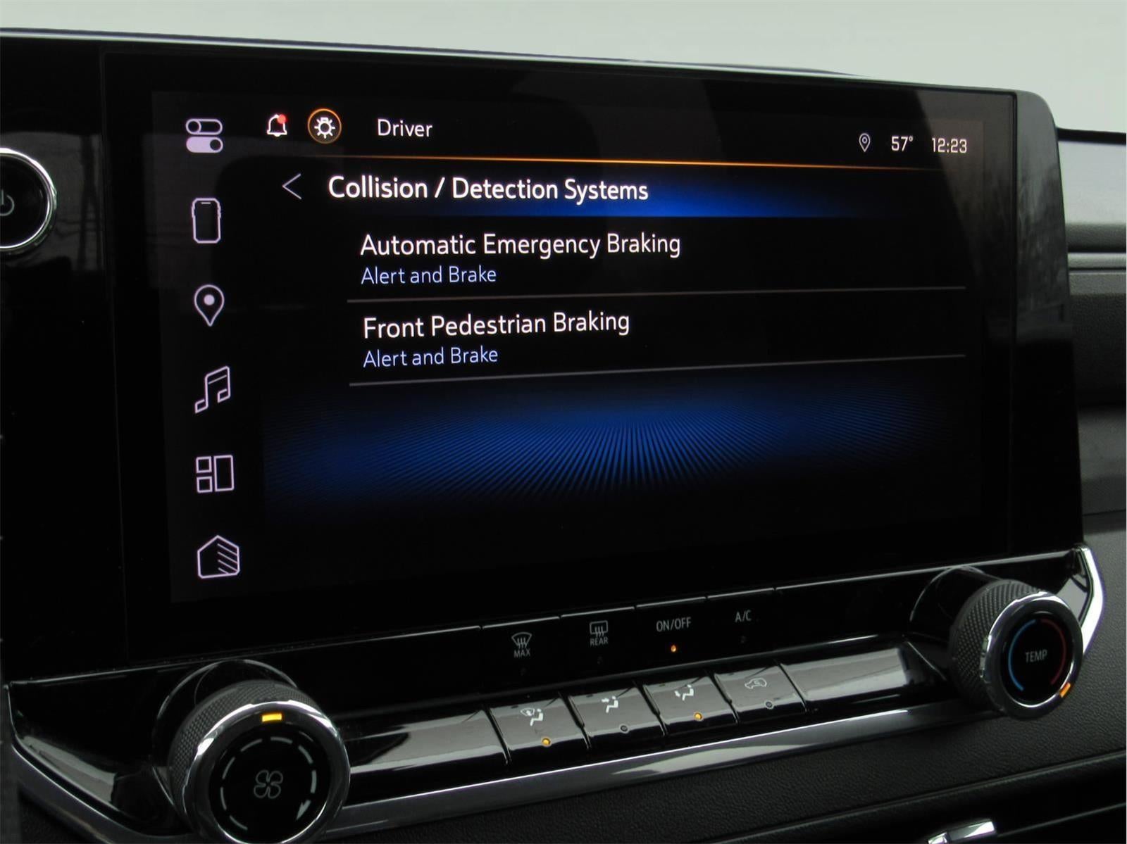 - The vehicle constantly monitors the roadway in front of the vehicle and identifies and tracks pedestrians on an interior display. If the system determines a likely impact, it will automatically take preventative steps to avoid hitting the pedestrian.